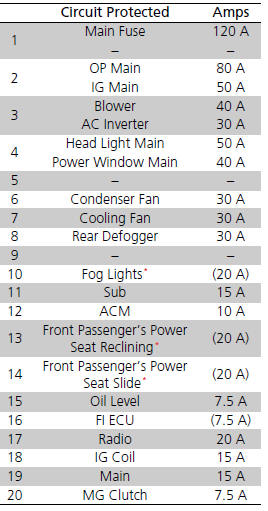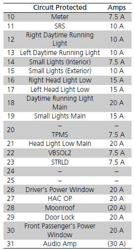 Fuse locations are shown on the fuse box cover. Locate the fuse in question by the fuse number and box cover number.
